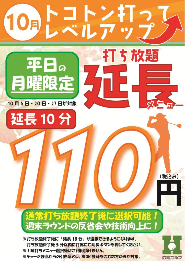 打ち放題延長10分が破格の110円(税込)にてご利用頂けます!