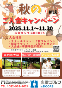 この秋、新しいゴルフライフを 広電ゴルフ inDOORS で始めてみませんか。
