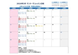 3月のマンツーマンレッスンの日程